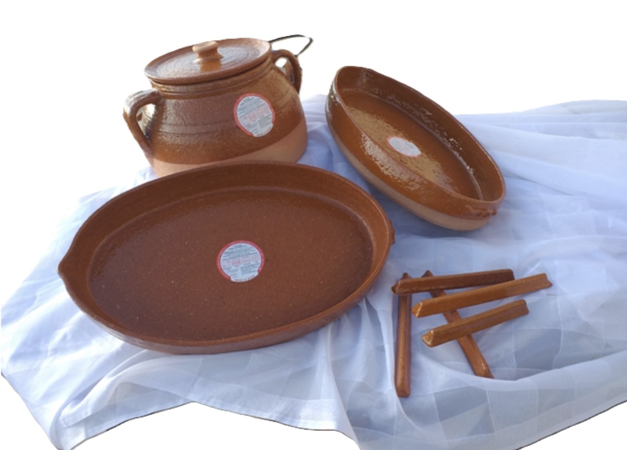 Esta batería está orientada a la cocina en hornos de cualquier tipo grandes, es un pack ideal para bonitas jornadas de reunión con amigos y familiares. Con este conjunto podrá disfrutar de asados únicos, proporcionado por el aroma especial que desprende la cocina lenta en barro refractario de Pereruela de Sayago. Además en el pack se incluye un juego de cinco barritas de barro que sirve para convertir cualquiera de sus asadores en un asador espcial para cochinillo (evita que la piel se pegue y que la cocción de la misma sea homogénea)