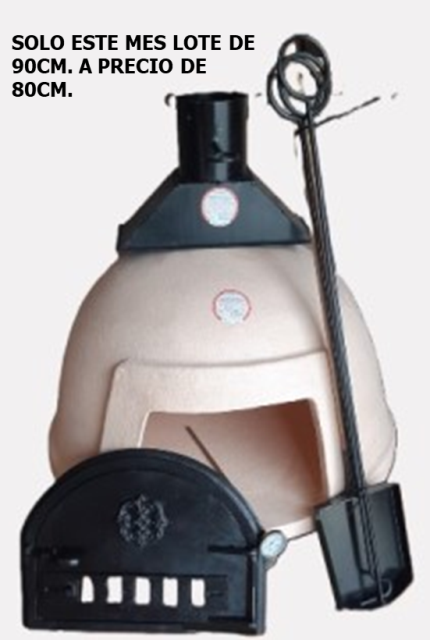 Este lote ha sido diseñado para ofrecer a nuestros clientes todo lo necesario para disfrutar de un horno tradicional de barro de Pereruela de Sayago con todo lo que en una jornada de cocina en este tipo de hornos pueda llegar a necesitar (Horno de barro refractario, puerta de hierro fundido, chimenea/campana metálica, juego de palas de 4 piezas y termómetro de hasta 500ºC)